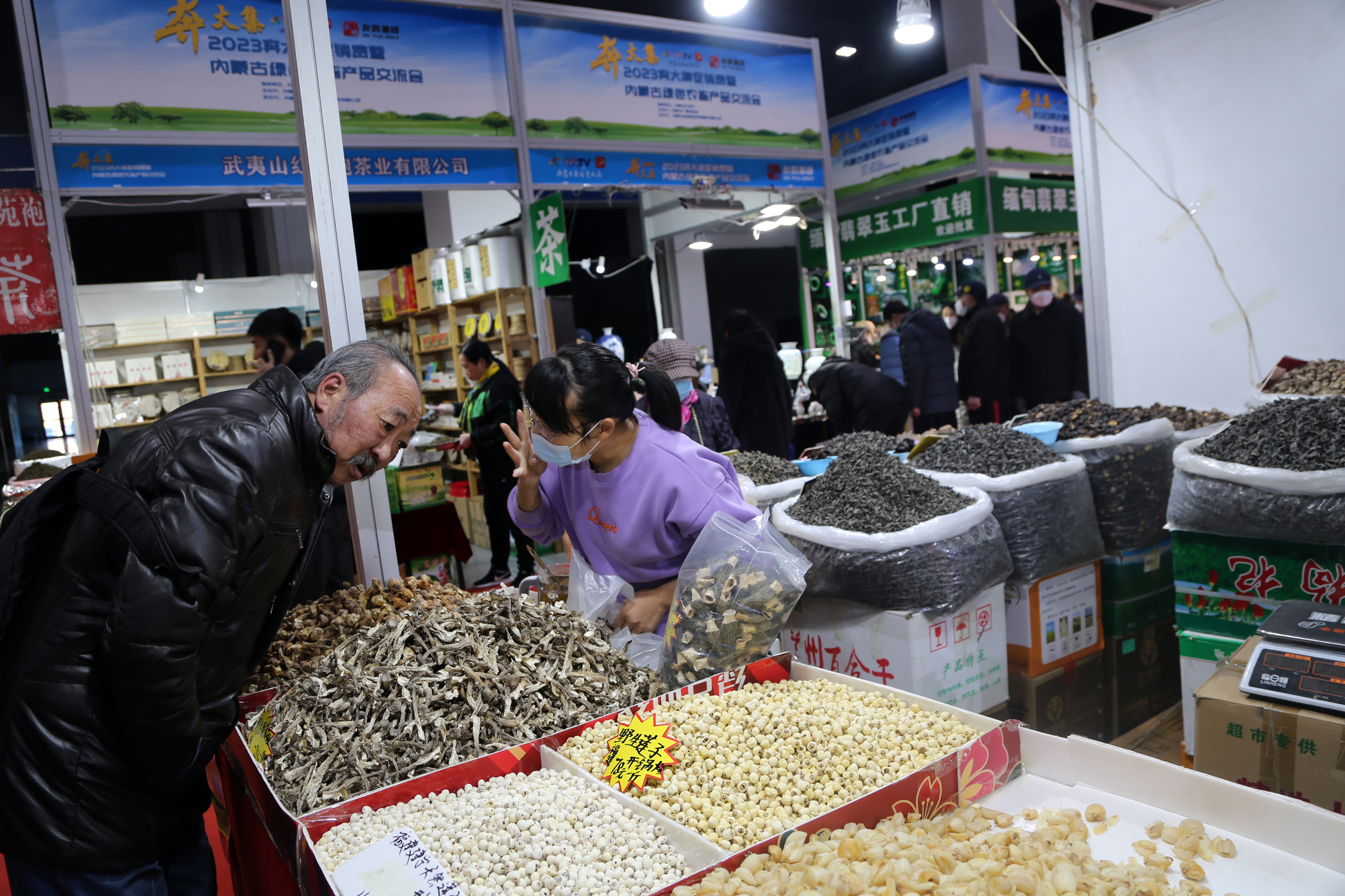 奔大集促消费暨内蒙古绿色农畜产品交流会,共吸引全国近百家参展商户,引进了天津海鲜、大连特产、福建茶叶等全国各地的绿色农畜产品。绿色农畜产品系列展销会特别设置“促进乡村振兴免费助农专区”,为内蒙古各盟市旗县相对偏远落后的地区、农牧民合作社等农畜产品提供免费推广展销的机会。