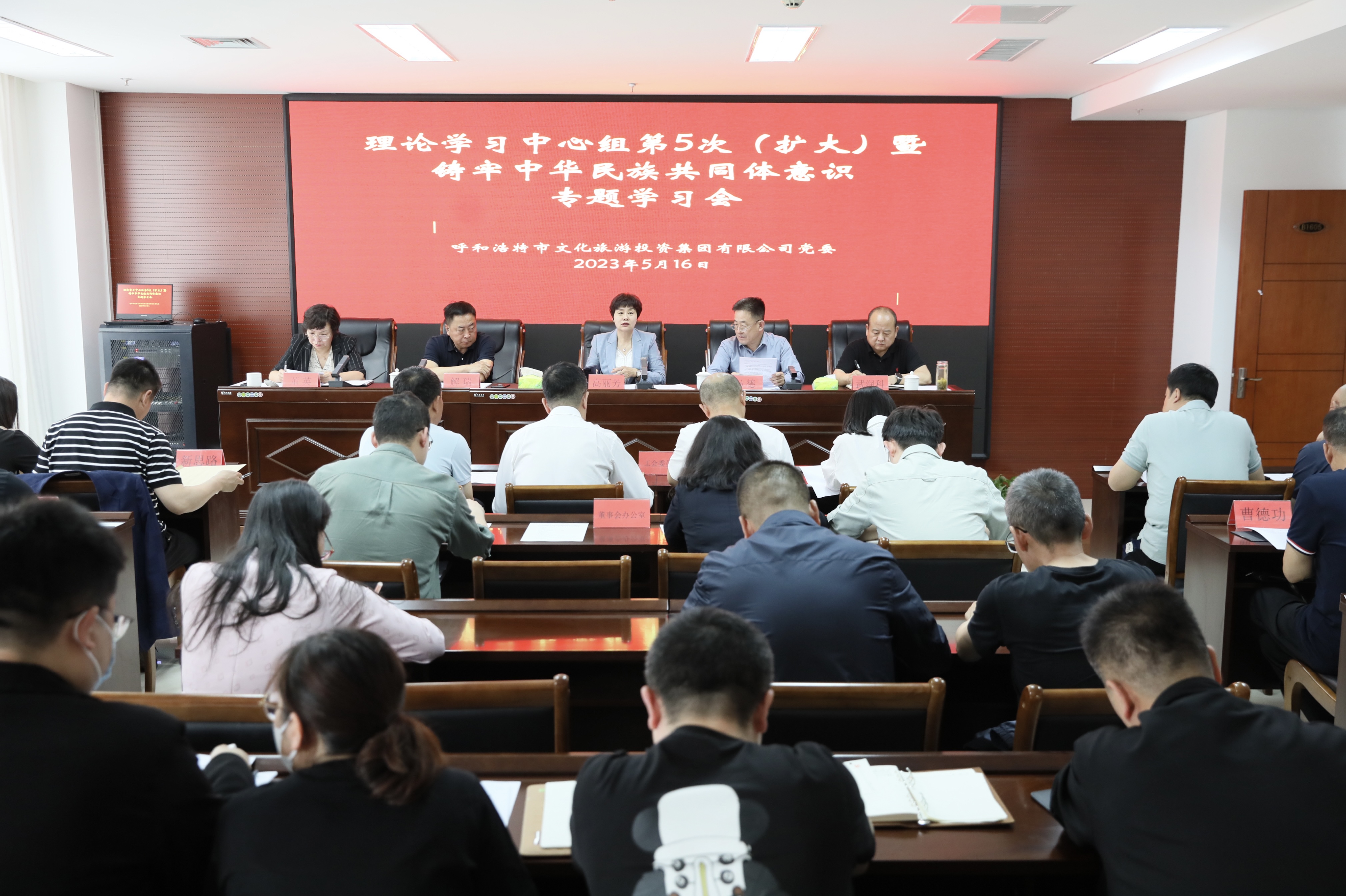 5月16日下午,304am永利集团党委召开2023年理论学习中心组第5次(扩大)学习会暨铸牢中华民族共同体意识专题学习会,集团党委书记、董事长高丽芳主持会议。