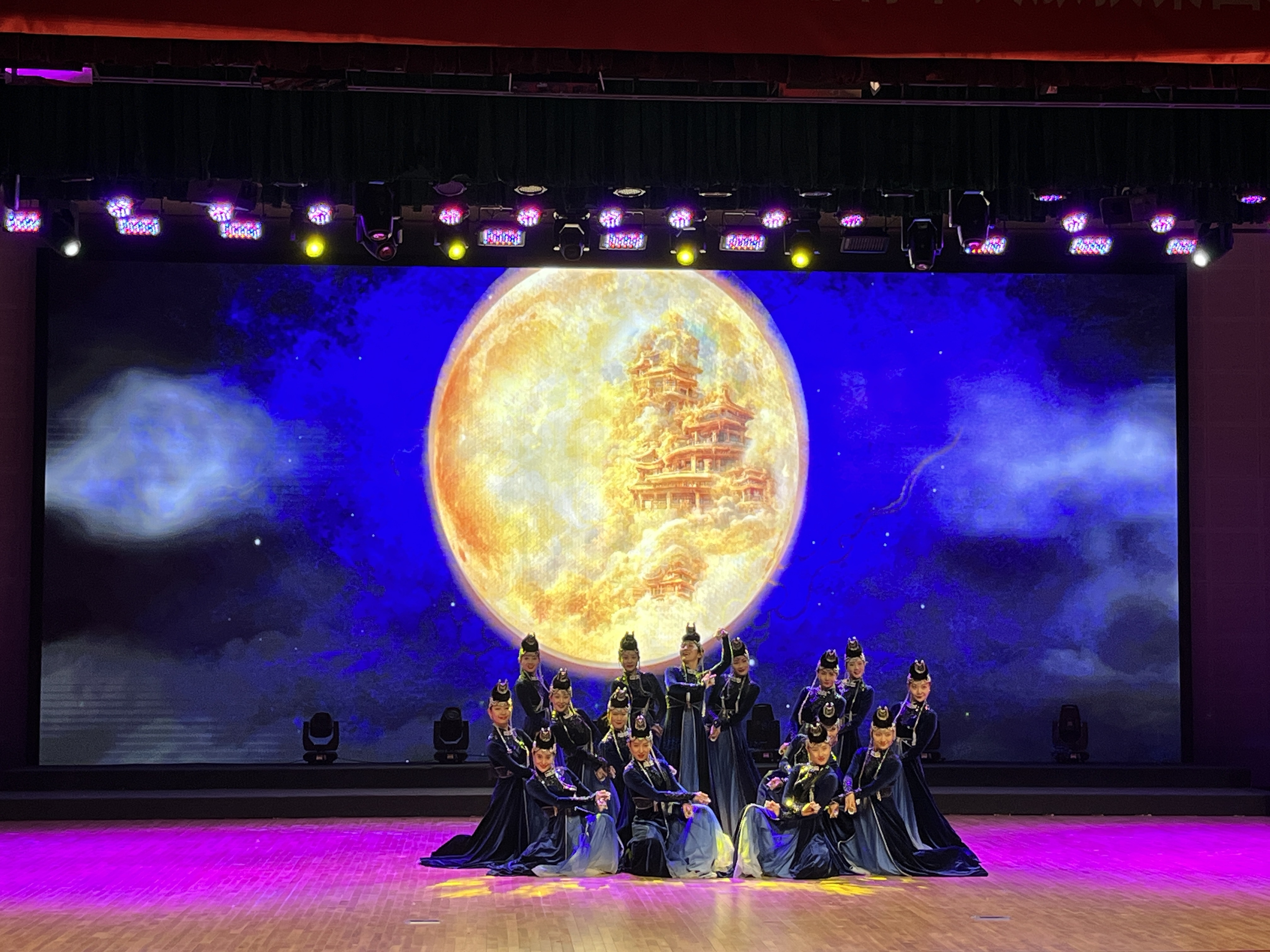 演出在悠扬的《美丽草原我的家》歌舞中拉开帷幕,马头琴激情演奏、民谣的舒缓温暖、呼麦的节奏多变,尤其是群舞《曲盅人》演出时,达到了全场高潮,气氛热烈,丰富多彩的演出,赢得了在座师生的阵阵掌声。