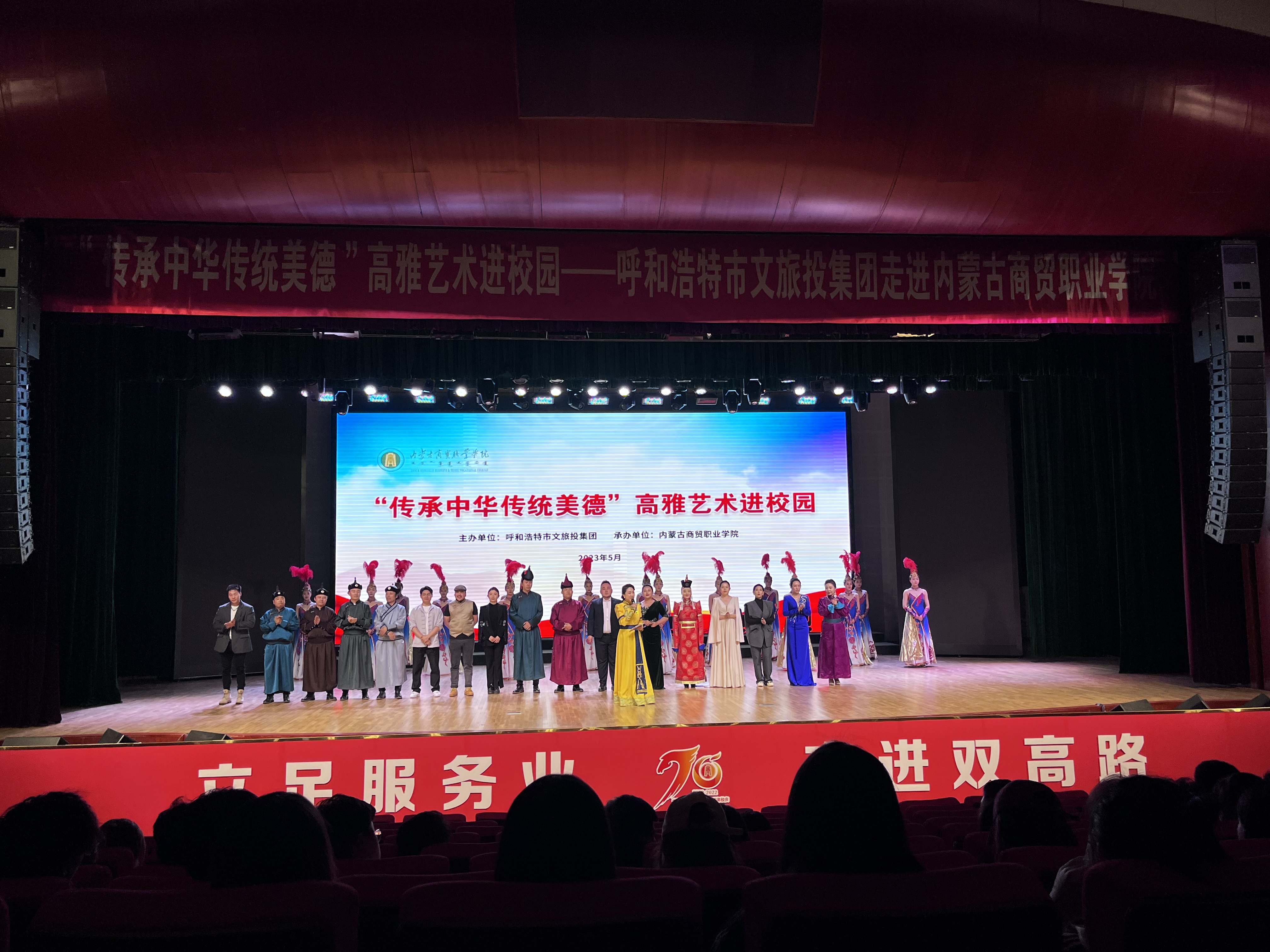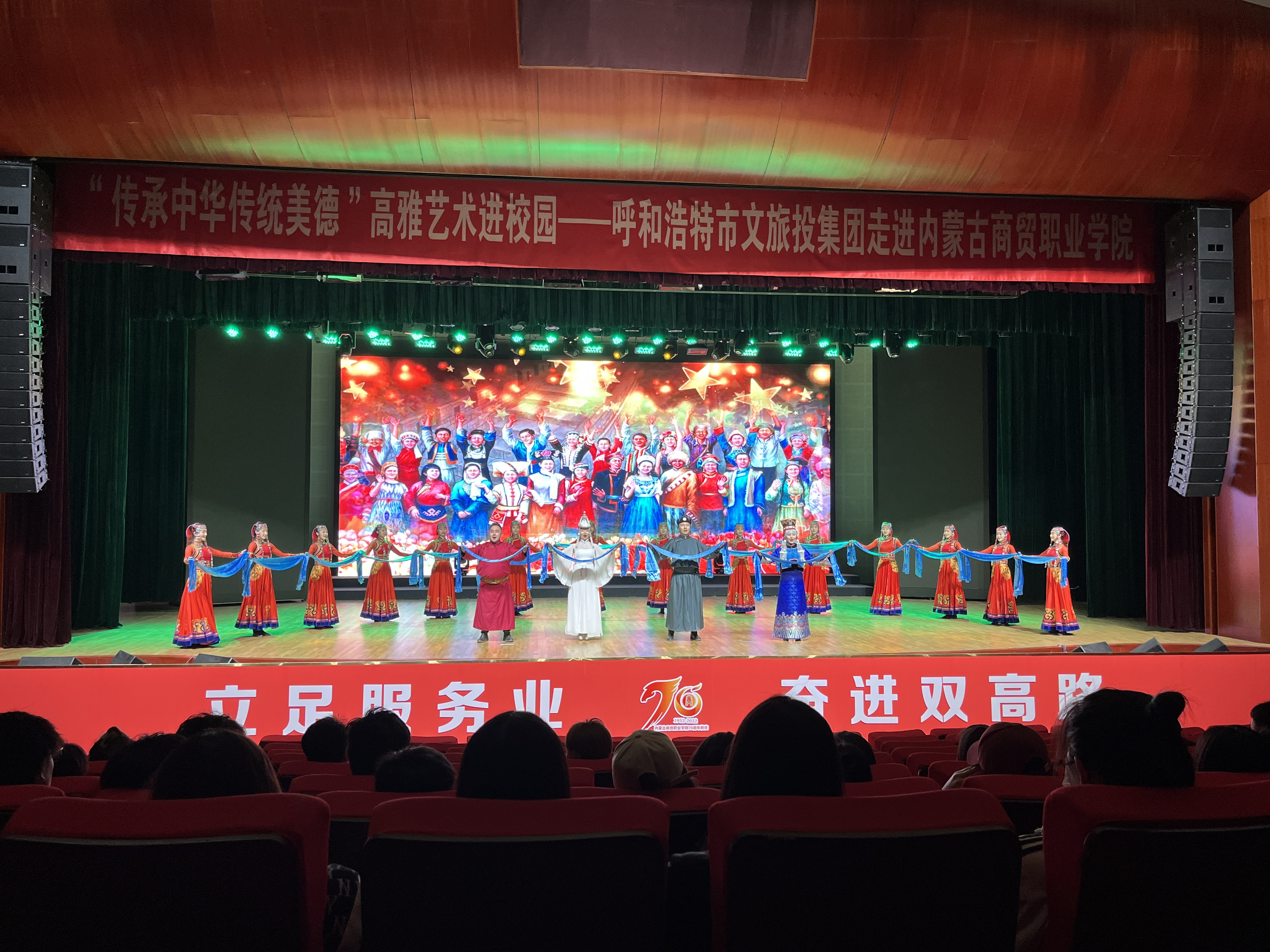 为贯彻落实党的二十大精神,传承中华传统美德,让在校师生感受中华文化魅力,丰富校园文化生活,5月25日,呼和浩特市歌剧舞剧院在内蒙古商贸职业学院开展了“传承中华传统美德 高雅艺术进校园”演出活动。