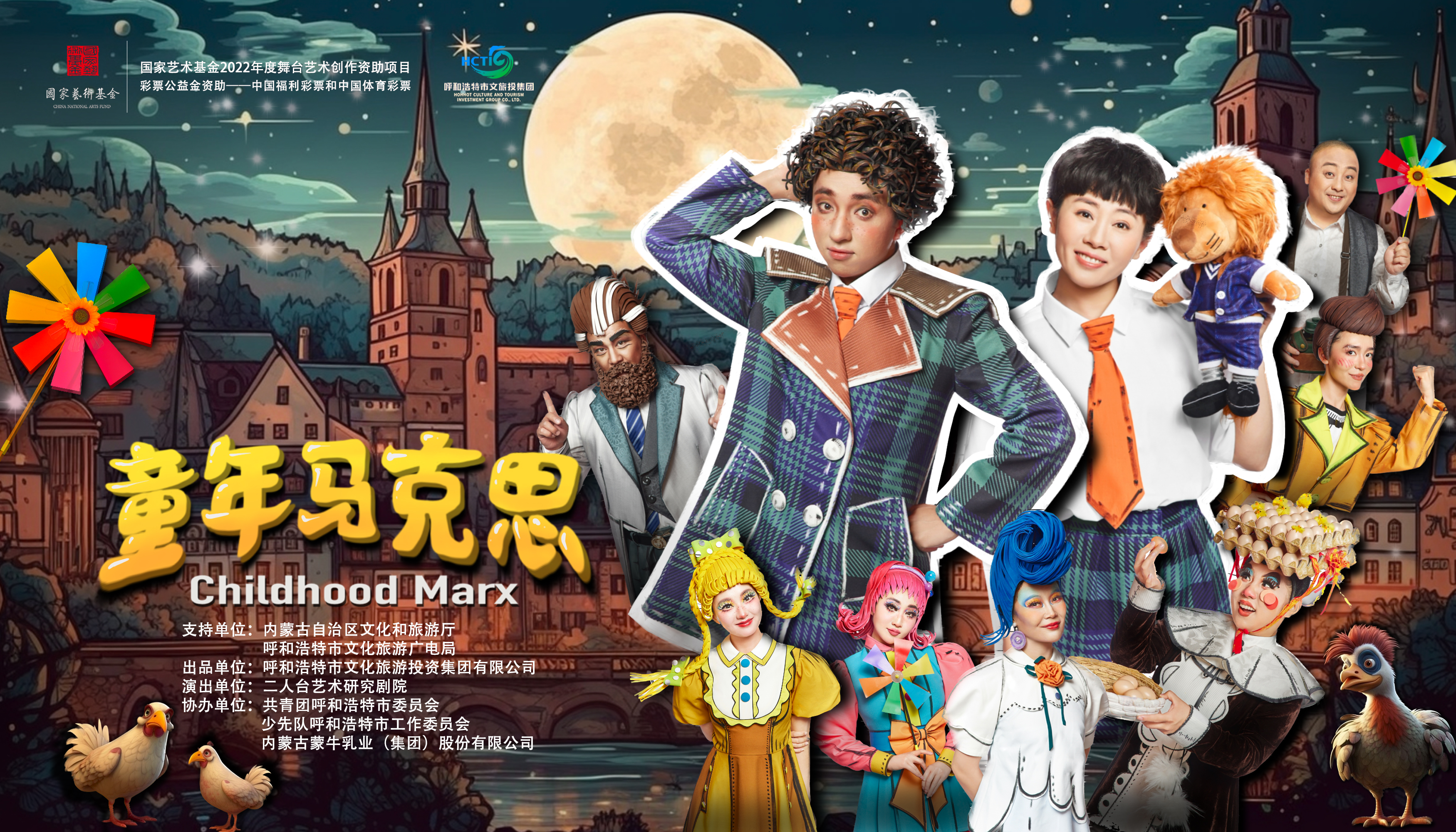 儿童剧《童年马克思》由董妮编剧,沈亮担任导演。其舞美设计边文彤、作曲吕学东、灯光设计刘传龙等皆是业内著名大师,呼和浩特市文化旅游投资集团二人台艺术研究剧院实力班底出演。