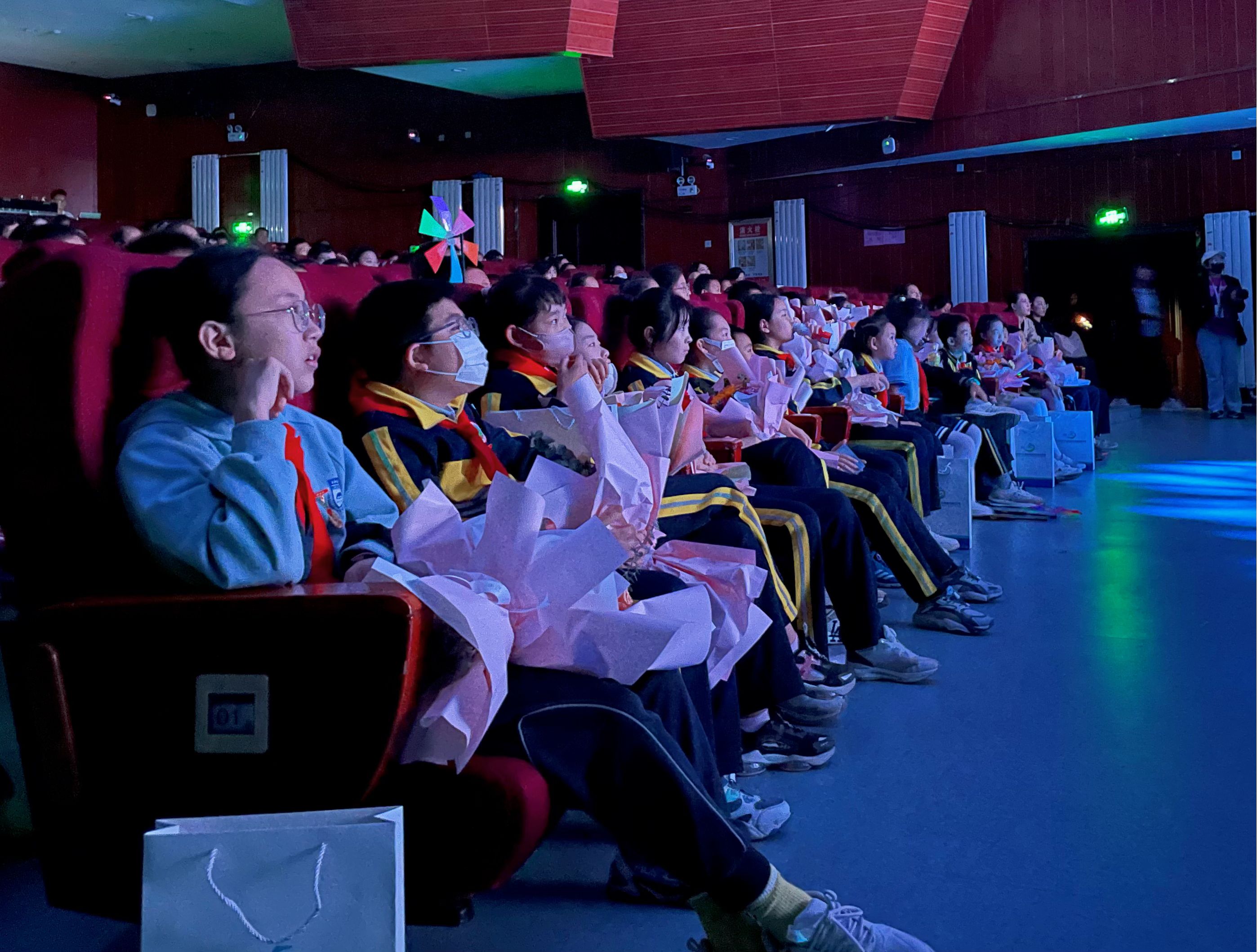 为体现呼和浩特市少先队员光荣感,加强少先队员政治启蒙和价值观塑造,本场首演特别邀请了全市部分“优秀少先队员”“红领巾奖章”少先队员代表进场观看。极具创意的舞美呈现,独特的服装造型和跌宕起伏的故事情节,引发了小朋友们时而哄堂大笑、时而着急直跺脚。演员们用诙谐幽默的表演带给现场观众寓教于乐的沉浸式体验。当由8岁的田觅蜜生动演唱的主题曲《风的方向》响起,将现场氛围推向高潮,“大朋友”小朋友们全场沸腾。