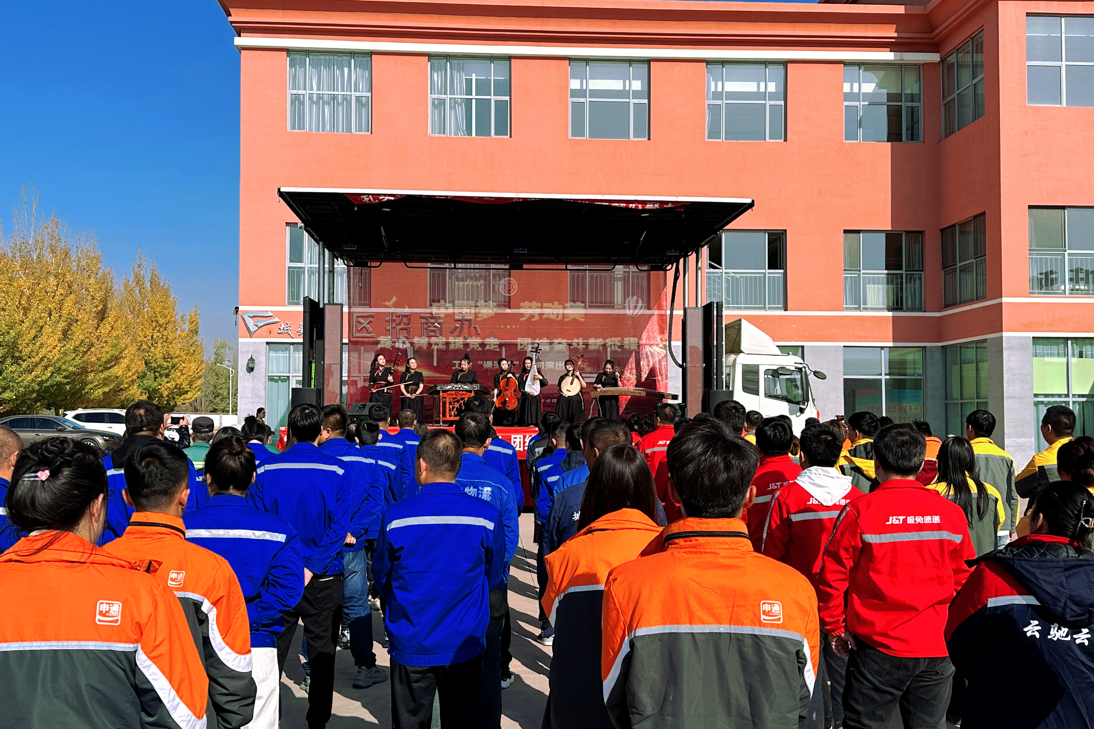 凛冽的寒风挡不住送关怀的脚步,深秋的严寒冷却不了演员们送温暖的心。整场演出以“中国梦·劳动美——凝心铸魂跟党走 团结奋进新征程”为主线,通过歌舞表演、音乐快板、女子器乐演奏、二人台小戏、二人台对唱等节目形式,为现场观众献上了一场精彩绝伦的文化盛宴。