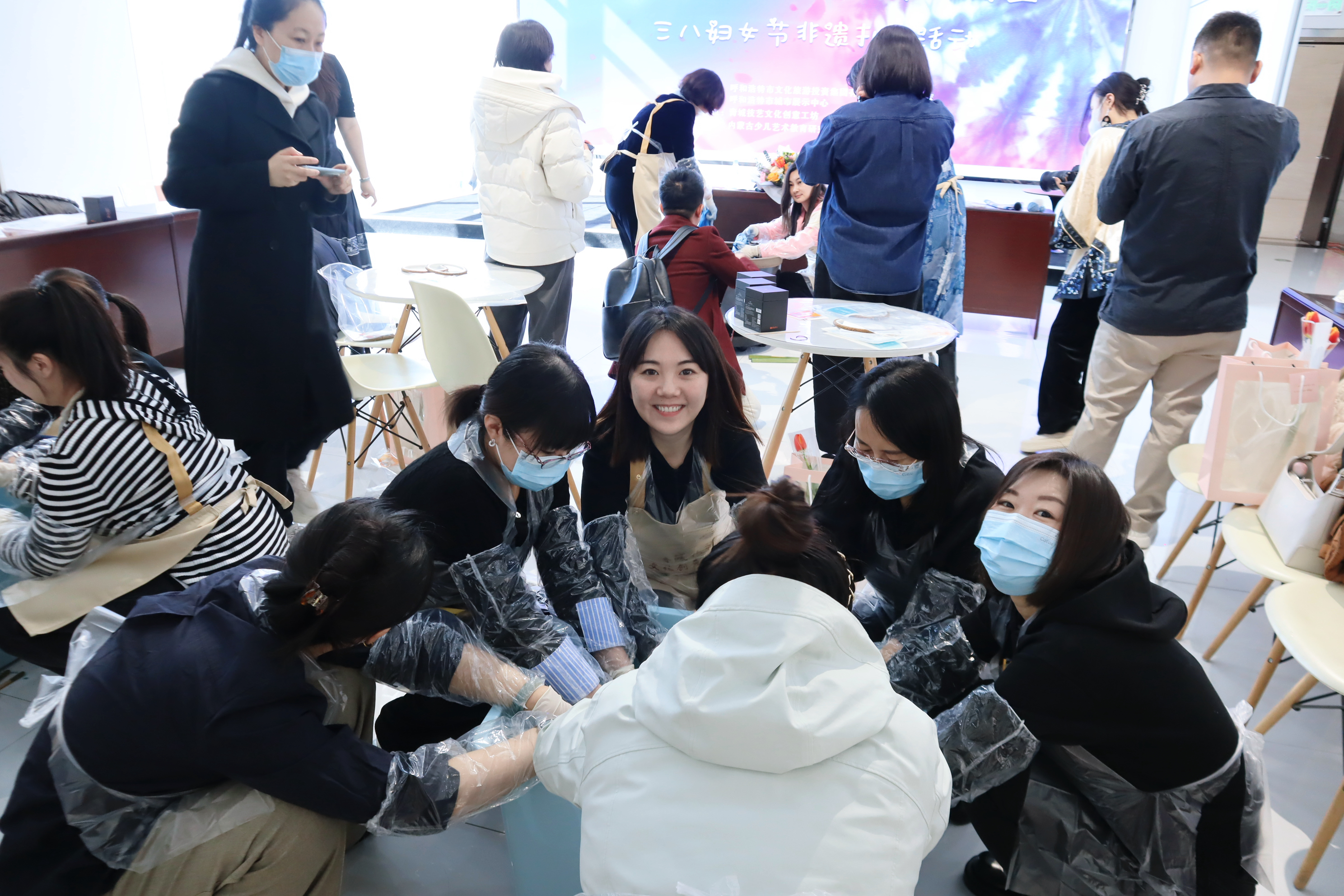 在国际妇女节这一天,呼和浩特市文化旅游投资集团工会委员会联合呼和浩特市城市展示中心、内蒙古少儿艺术教育研究所,将扎染这门非物质文化遗产引入青城技艺文化创意工坊,为青城女神们带来手工体验和审美享受的双重厚礼。