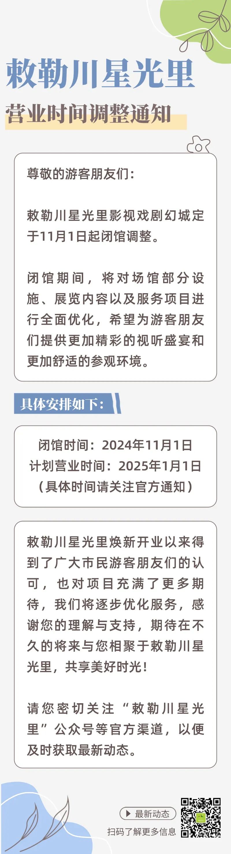 敕勒川星光里营业时间调整通知